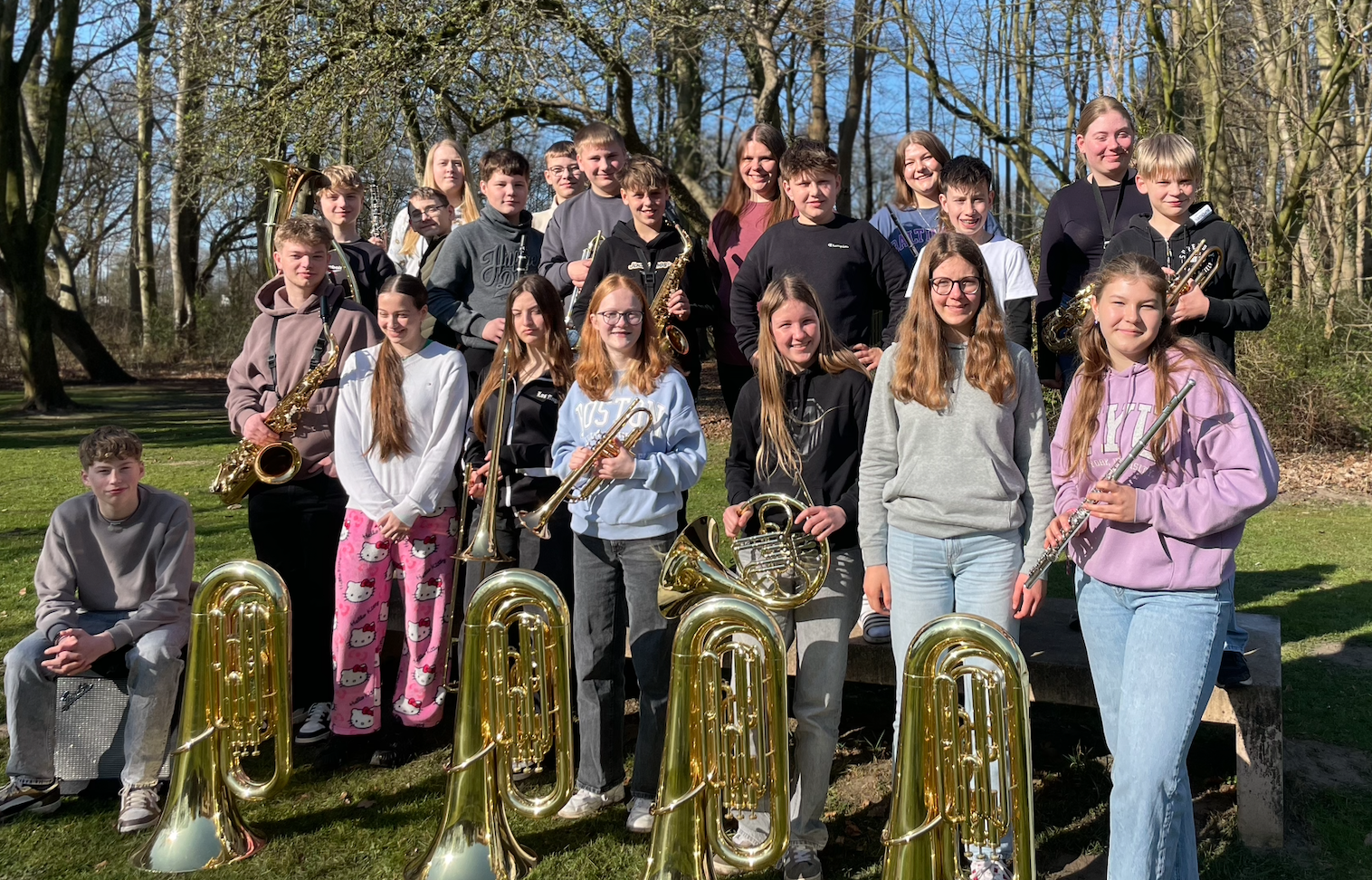 Das Schulorchester Sound Ursula ist eine im AG-Bereich angebotene Erweiterung der Bläserklassen und für alle Jahrgänge geöffnet. Für die Fahrt wurden neben der bereits vorhandenen Stammbesetzung u. a. besonders engagierte und leistungsstarke Schülerinnen und Schüler aus den Jahrgängen 7 (Bild unten) und 8 eingeladen. Statt sich mit dem üblichen Blasorchestersound zu befassen, erkundet das Orchester eher den Jazz-Bereich, sodass eher ein Big Band-Sound im Vordergrund steht. Davon können sich Interessierte beim Sommerkonzert am 24.06. selbst ein Bild verschaffen. Das Sound Ursula freut sich auf Sie!