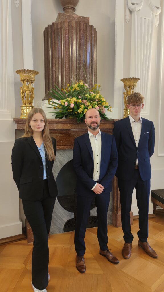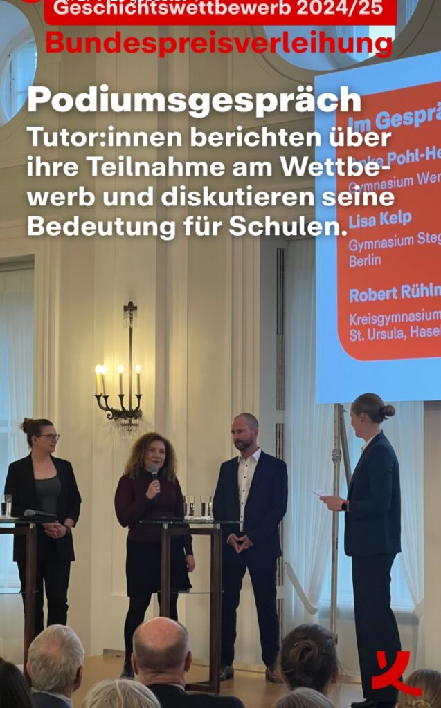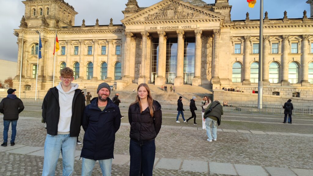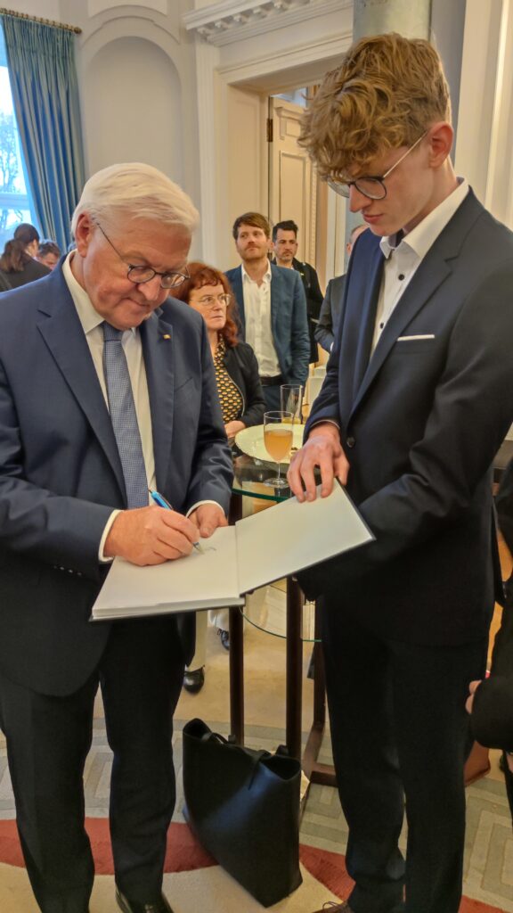 Gemeinsam mit Lehrer Robert Rühlmann besuchten die Finalisten Marta Strüwing und Erik Benten (beide JG 12) am 10.11. und 11.11.25 auf Einladung des Bundespräsidenten die  Bundeshauptstadt um an der Preisverleihung teilzunehmen. Erik Benten erreichte dabei einen hervorragenden dritten Platz. Herzlichen Glückwunsch zu dieser tollen Leistung!