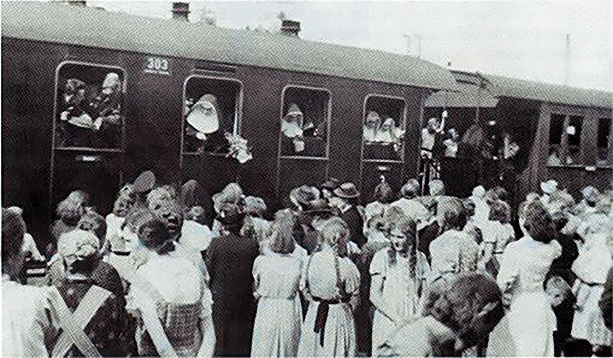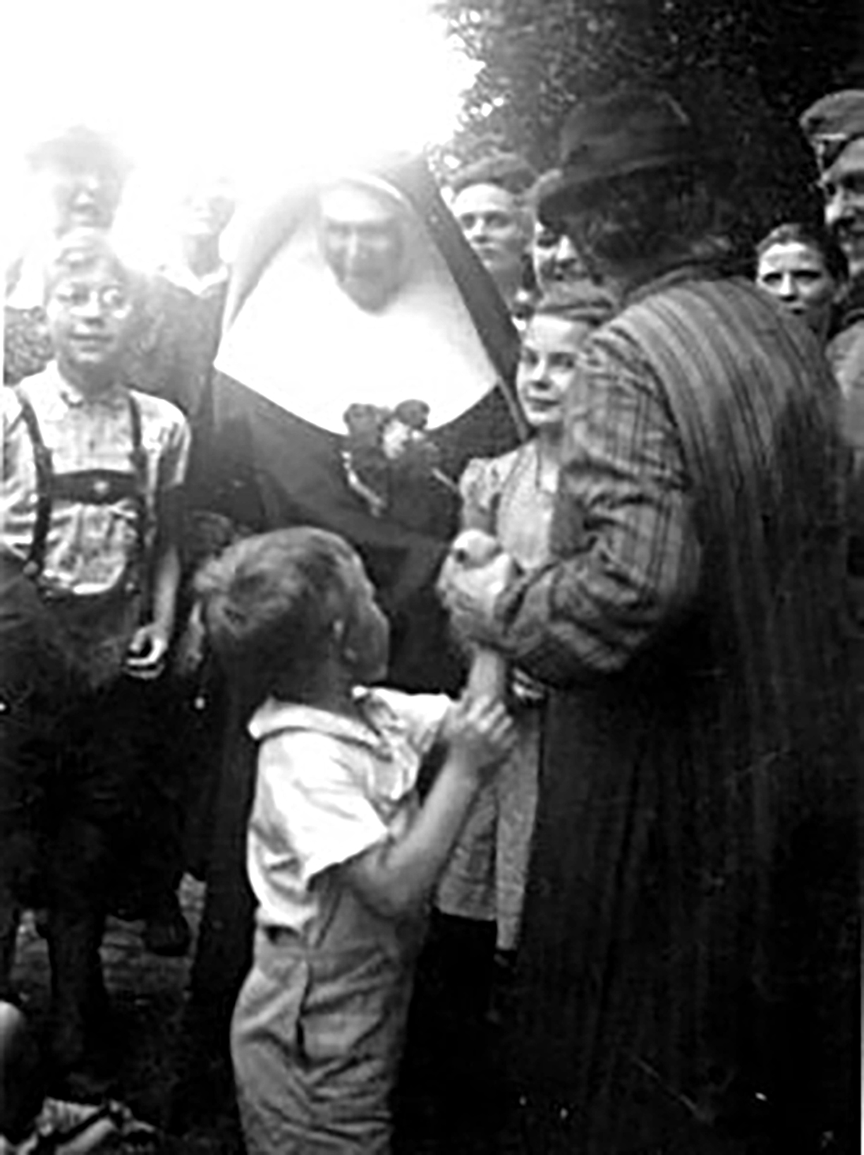 Bild 1 & 2: Zahlreich verabschiedeten die Bürger*innen Haselünnes die Ursulinen nach der erzwungenen Räumung des Klosters 1941. (Ursulinenkloster, Repro: Bernhard Vehring)