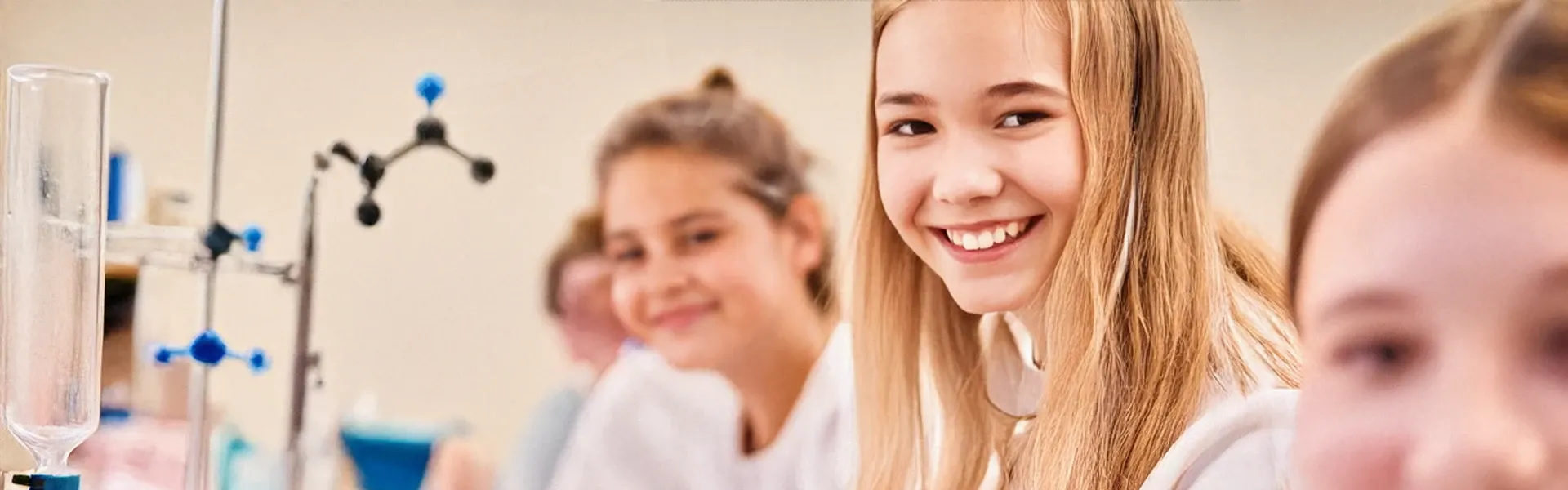 Wir vermitteln Grundlagen der Chemie, wie Modelle zum Aufbau der Stoffe, die Symbolsprache der Chemie und chemisches Rechnen. Auf dieser Basis lernen unsere Schülerinnen und Schüler chemische Zusammenhänge zu verstehen, zu erklären und Lösungen zu entwickeln.