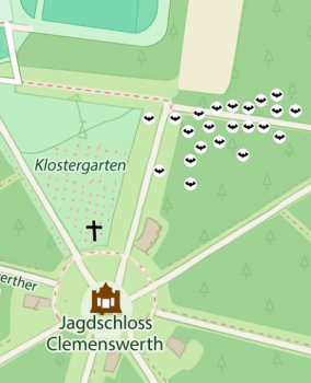 jedoch sowohl lichttolerante als auch lichtempfindliche Arten empfindlich auf Licht, wenn es um ihre Tagesquartiere geht – also jene Orte, an denen sie sich tagsüber aufhalten [1]. Die Fledermauskästen am Schloss Clemenswerth erfüllen genau diese Funktion. Daher stellt sich die Frage, ob das Flutlicht des Sportplatzes den beobachteten Rückgang der Fledermauspopulation erklären könnte.