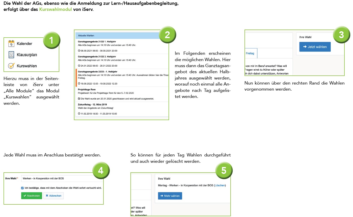 Die Schüler können sich für Arbeitsgemeinschaften zu Beginn eines jeweiligen Halbjahres via IServ anmelden (s. Bild unten).
