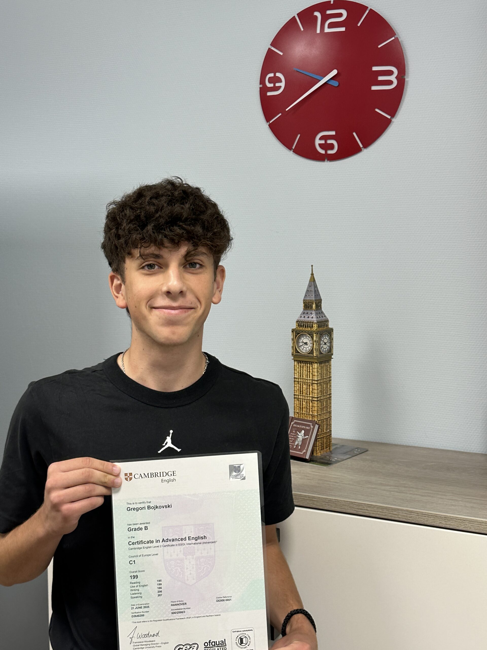 Wir gratulieren herzlich unserem Schüler Gregori, der die Cambridge-Prüfung auf dem C1-Niveau (Cambridge Advanced) mit großem Erfolg bestanden hat! Mit dem international anerkannten Zertifikat hat Gregori eindrucksvoll bewiesen, wie stark seine Englischkenntnisse sind – ein beachtlicher Erfolg, auf den er mit Recht stolz sein kann.